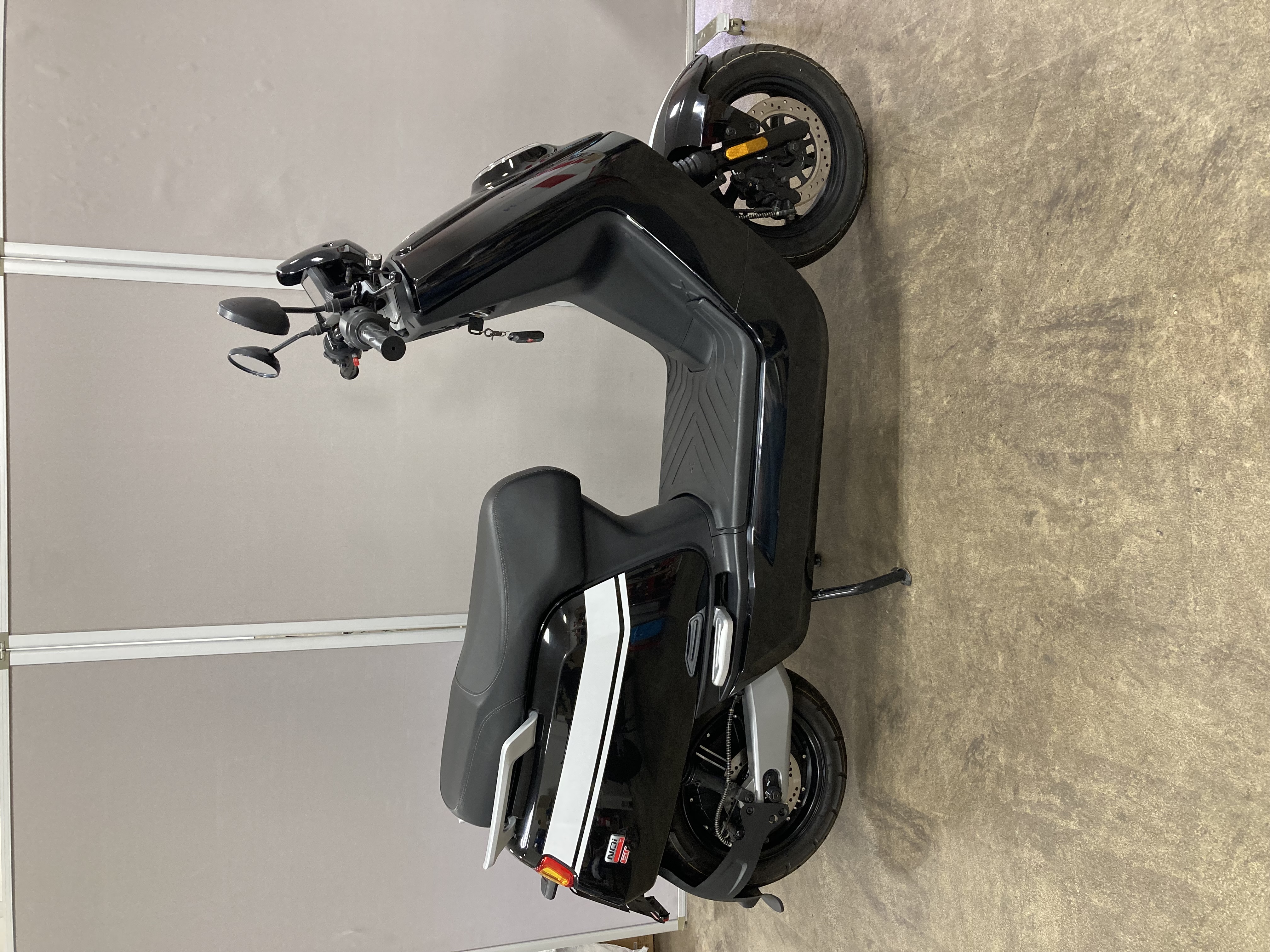 快適な走行性に定評のある原付二種の電動バイク「NQi GT」カラーは「ブラック/ホワイト」です。